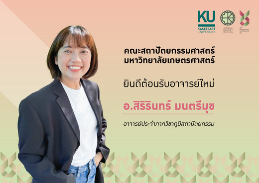 คณะสถาปัตยกรรมศาสตร์ มหาวิทยาลัยเกษตรศาสตร์ยินดีต้อนรับอาจารย์ใหม่ อ.สิริรินทร์ มนตรีมุข อาจารย์ประจำภาควิชาภูมิสถาปัตยกรรม ปฏิบัติงานตั้งแต่วันที่ 1 ธันวาคม 2568 เป็นต้นไป