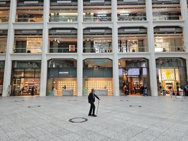 The tour also featured contemporary projects that redefine the relationship between commerce, leisure, and public life. UNIQLO Park, designed by Sou Fujimoto Architects in collaboration with Kashiwa Sato, combines retail with recreation by transforming the building’s sloping roof into an accessible playground complete with stairs, slides, and open-air gathering spaces. This innovative hybrid demonstrates how commercial architecture can foster inclusivity and community interaction.