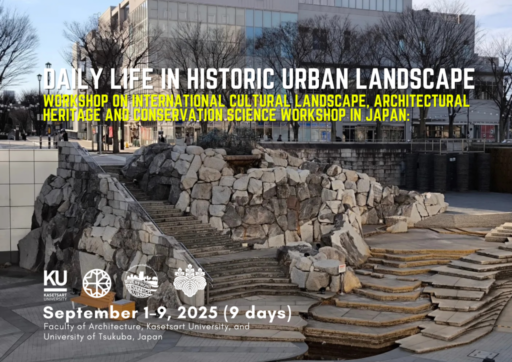 The 2025 International Cultural Landscape, Architectural Heritage and Conservation Science Workshop was held from September 1–9, 2025, in Japan under the theme Daily Life in Historic Urban Landscape. Co-organized by the University of Tsukuba and Kasetsart University, the program was designed as an intensive, field-based learning opportunity that brought together students, researchers, and faculty to engage with cultural heritage in urban contexts. The workshop emphasized the interplay between cultural landscape studies, architectural heritage, and conservation science. With its focus on urban daily life, the program highlighted how ordinary practices, small-scale features, and lived experiences shape the historic environment alongside monuments and iconic buildings. Tsukuba, Tokyo, and Yokohama were selected as the main sites because they represent diverse layers of Japan’s modern urban heritage, ranging from traditional neighborhoods to experimental postmodern architecture and contemporary renewal projects.