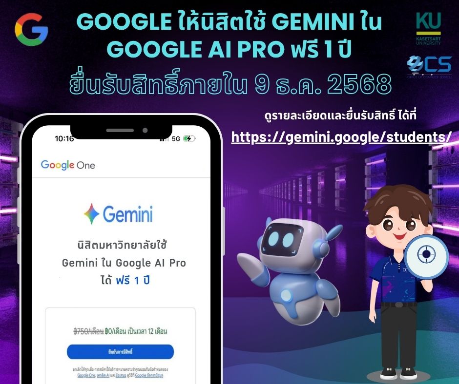 📣 Google ให้นิสิต และบุคลากร มก. ใช้ Gemini ใน Google AI Pro ฟรี 1 ปี