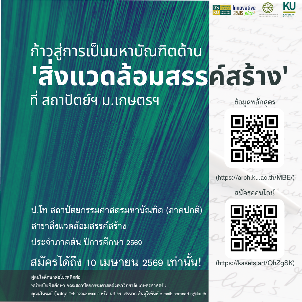 ข้อมูลหลักสูตร: https://arch.ku.ac.th/MBE/