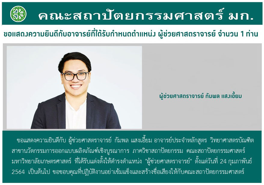 ขอแสดงความยินดีกับอาจารย์ที่ได้รับกำหนดตำแหน่ง ผู้ช่วยศาสตราจารย์ ขอแสดงความยินดีกับอาจารย์ที่ได้รับกำหนดตำแหน่ง ผู้ช่วยศาสตราจารย์